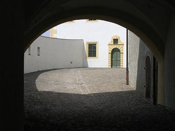 This is the gate to the prisoner's courtyard. On the background is an extension with the entrance to the Dutch quarters. The gate is known as Flüsterbogen ("Whispering arch"): if you stand at one side and whisper into the arch, someone at the other side can hear it clearly. |