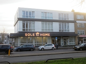 In de voormalige Aksa supermarkt aan de Slinge komt Sole Home. Al een tijdje is men binnen aan het werk maar vandaag werd de naam van de zaak in grote verlichte letters op de gevel aangebracht (foto rechts). Wat voor winkel het wordt weet ik nog niet maar ik vermoed een meubelzaak.