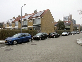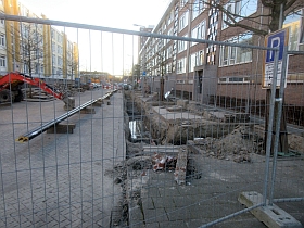 In de Middelharnisstraat zijn de vorige week aangekondigde werkzaamheden begonnen (foto rechts), aan de gegraven sleuven is zonder twijfel zien dat de flat van De Groot op het warmtenet wordt aangesloten.